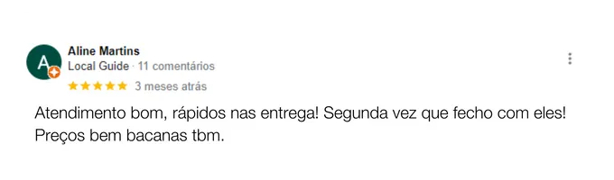 A satisfação de nossos clientes é nossa prioridade. No Google, recebemos quase 750 avaliações a uma nota média de 4,8 de 5: